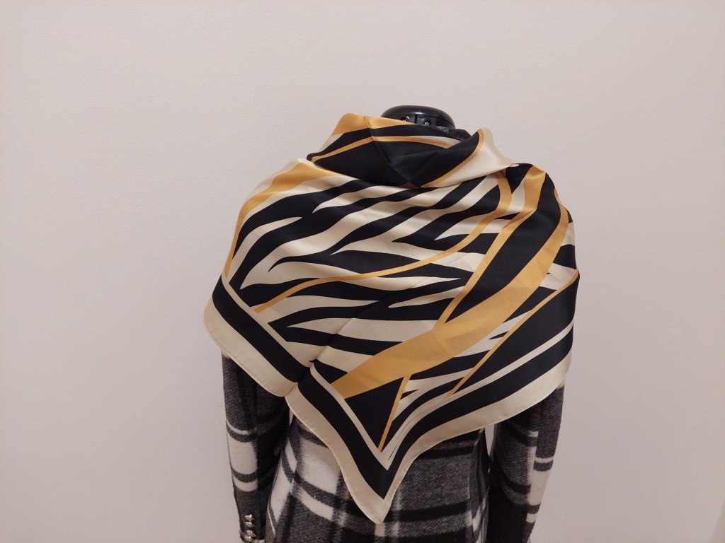.Existují různé druhy vázání šátků tak, aby krásně vynikl vzor. Stejně tak může šátek posloužit třeba k ozvláštnění kabelky.
