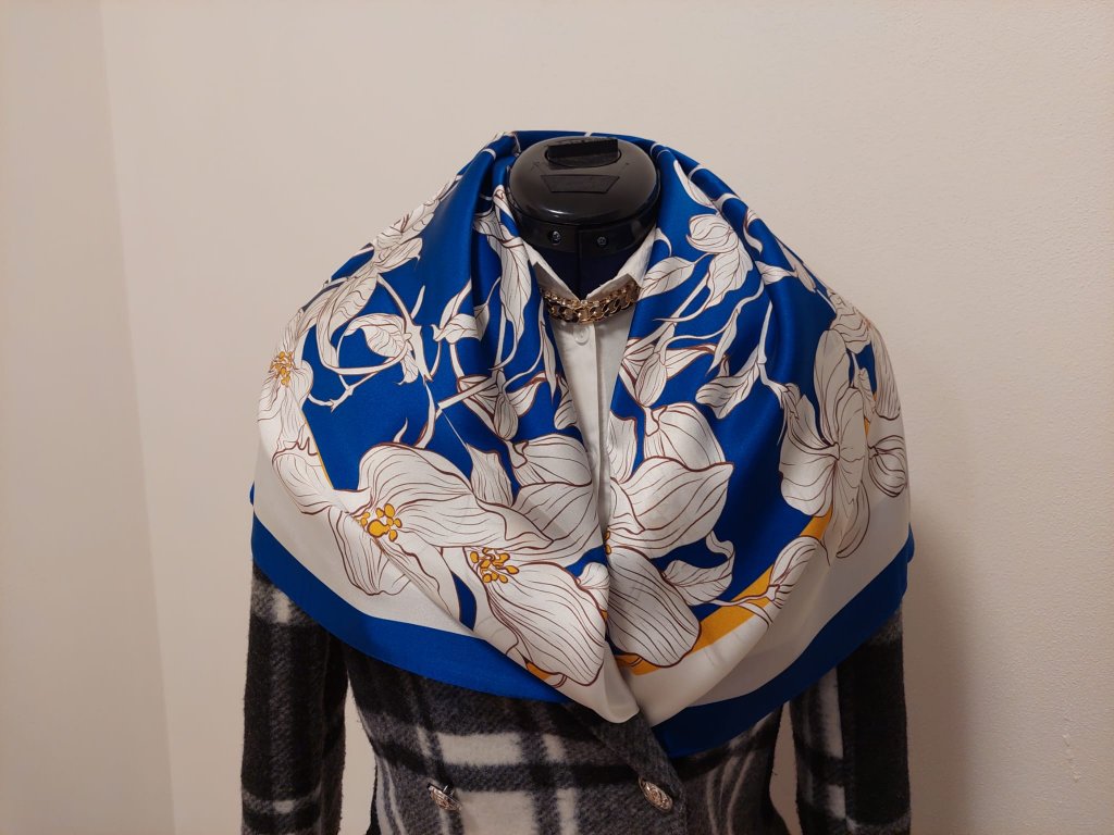 .Existují různé druhy vázání šátků tak, aby krásně vynikl vzor. Stejně tak může šátek posloužit třeba k ozvláštnění kabelky.